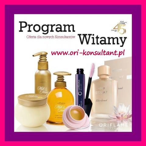 Zapraszam Cię do świata Oriflame - chętnie pomogę Ci zostać konsultantką(em) i kupować kosmetyki dla siebie po niższych cenach oraz zarabiać na ich sprzedaży. Dla Nowych Konsultantów nagrody w programie Witamy o wartości 231zł -tusz do rzęs Wonder i krem Tender Care, zestaw Milk Honey, woda toaletową Eclat Weekend!